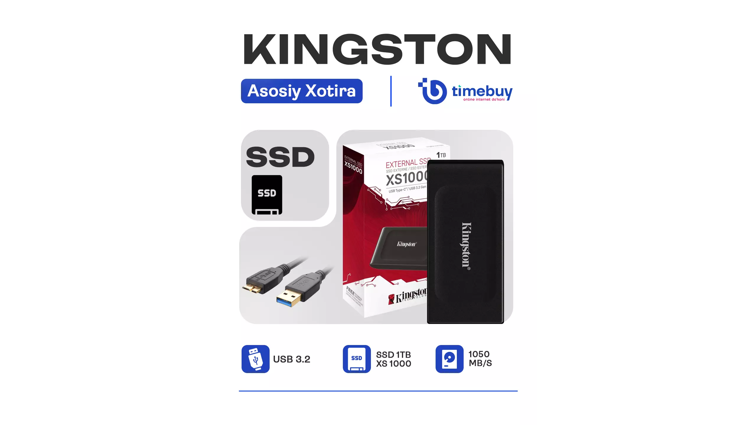 Tashqi qattiq diskli SSD Kingston XS1000 1Tb